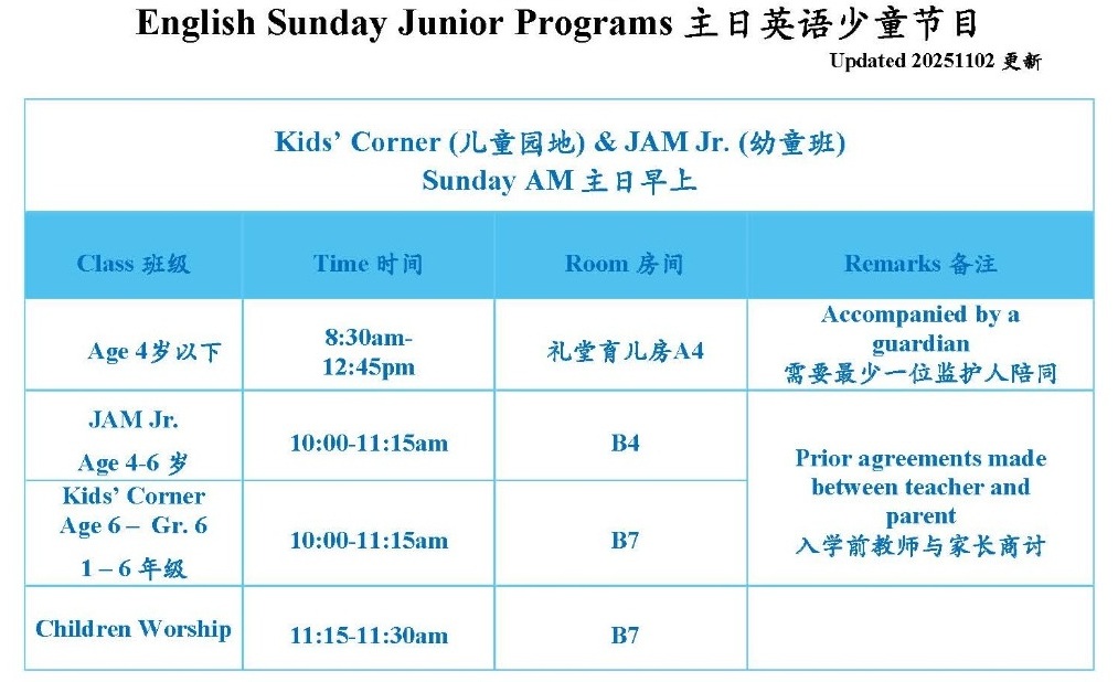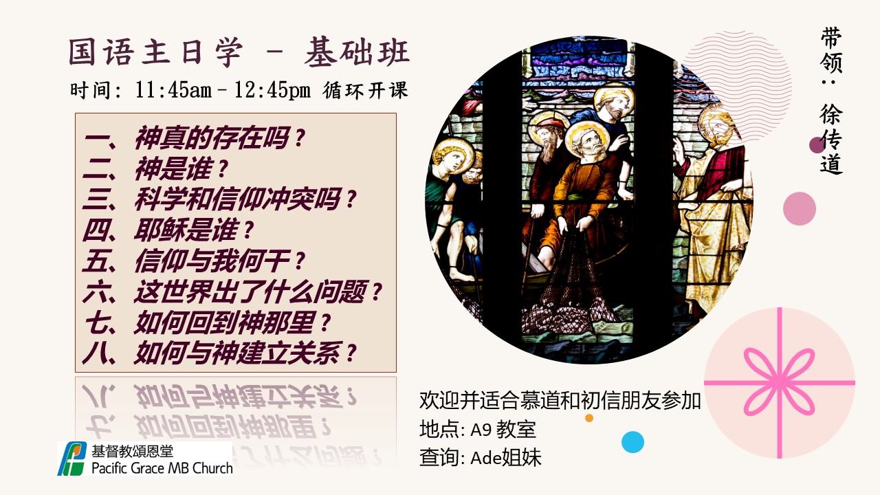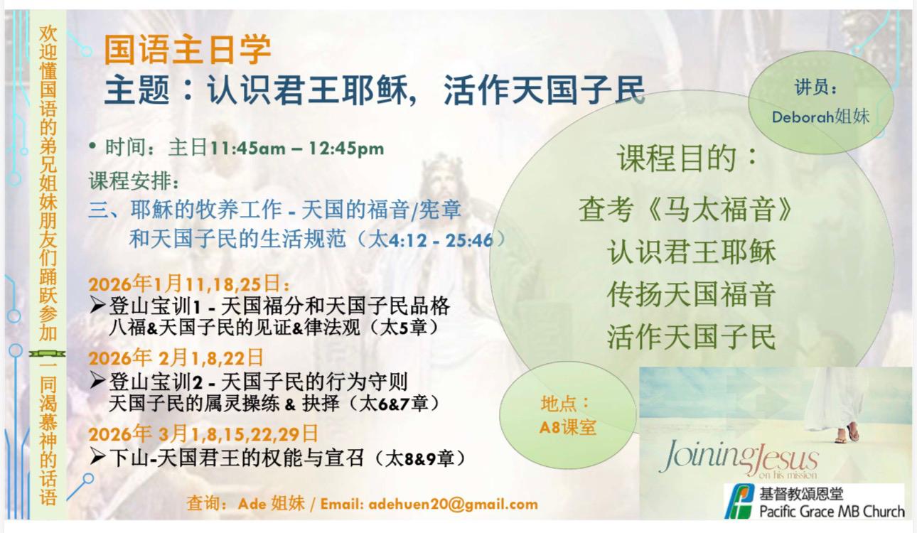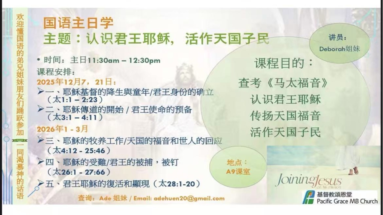 欢迎参加今日国语主日崇拜。10am国语成人於礼堂,4岁以下幼童(需家长陪伴)于A4┅