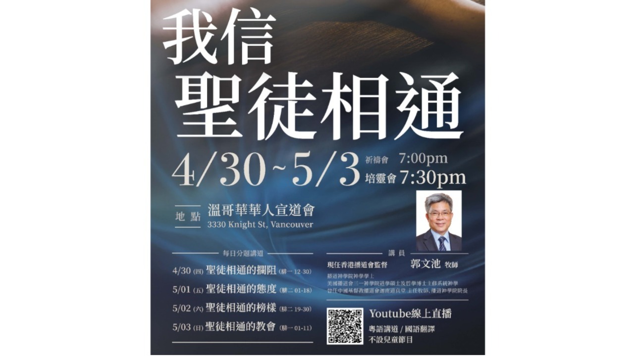 感谢加拿大华人神学院(温哥华)特约教授姜平牧师/博士莅临证道,求主赐福!